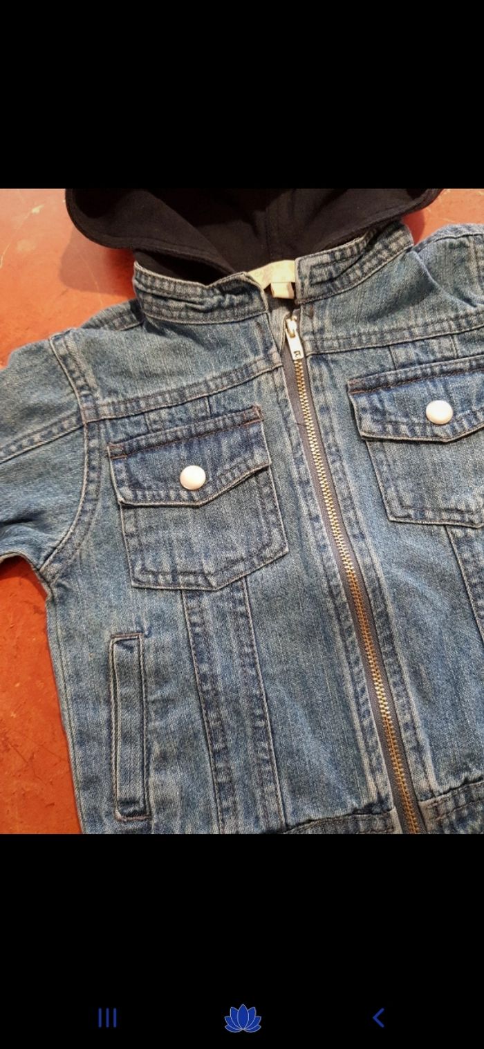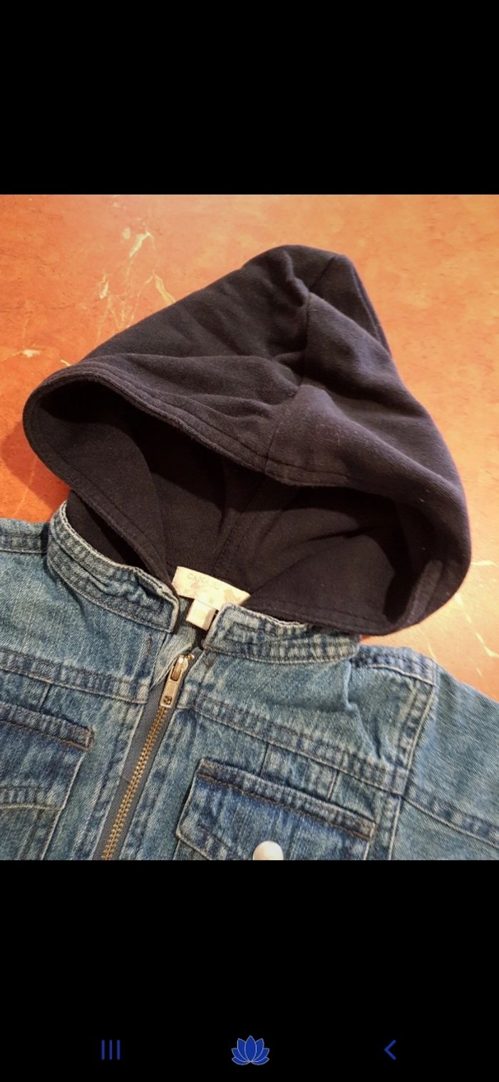 Veste en jean avec capuche. En parfait état. Zippée à l avant