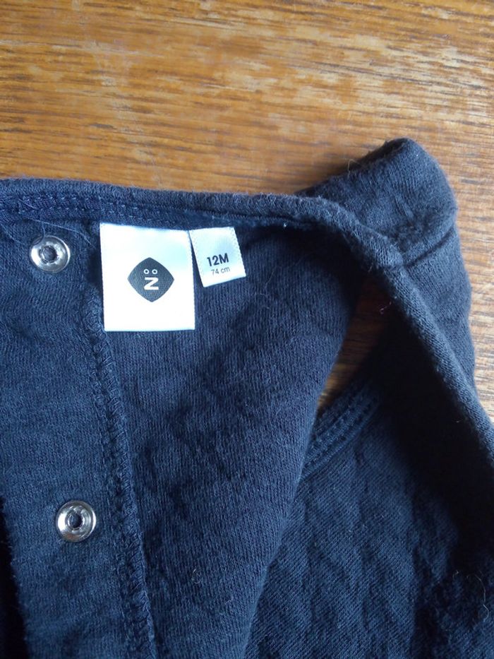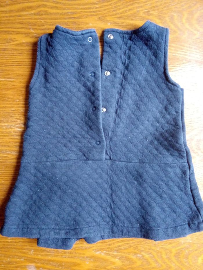 Cette jolie petite robe bleue marine a été portée à plusieurs reprises. Elle est douce et plutôt adaptée pour les saisons automne hiver. Elle se ferme avec des boutons pressions dans le dos.