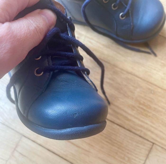 Paire de chaussures en cuir taille 22. 2 traces d'usure (cf photos) mais très peu visibles.