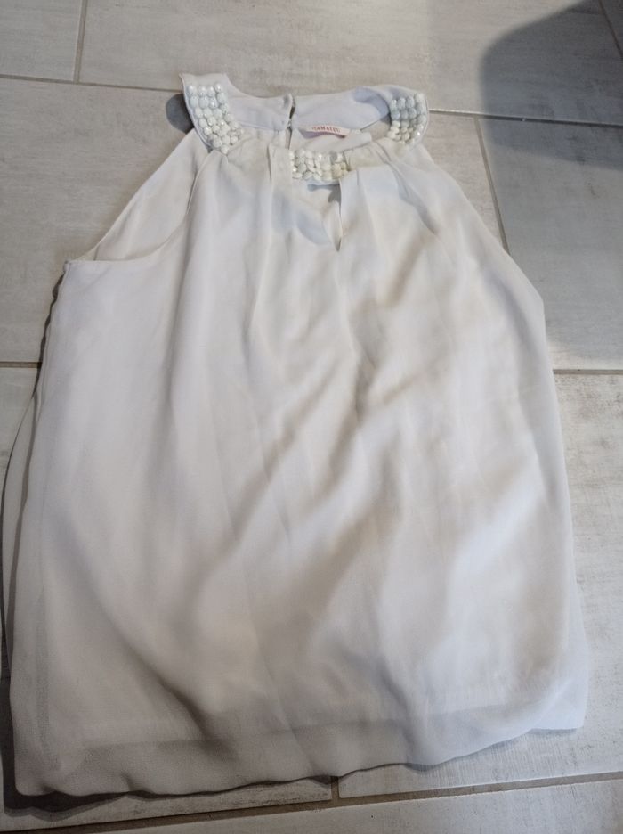 Vends un tee-shirt sans manche femme camaïeu taille L les petits boutons en haut du tee shirt commence à s enlever.
