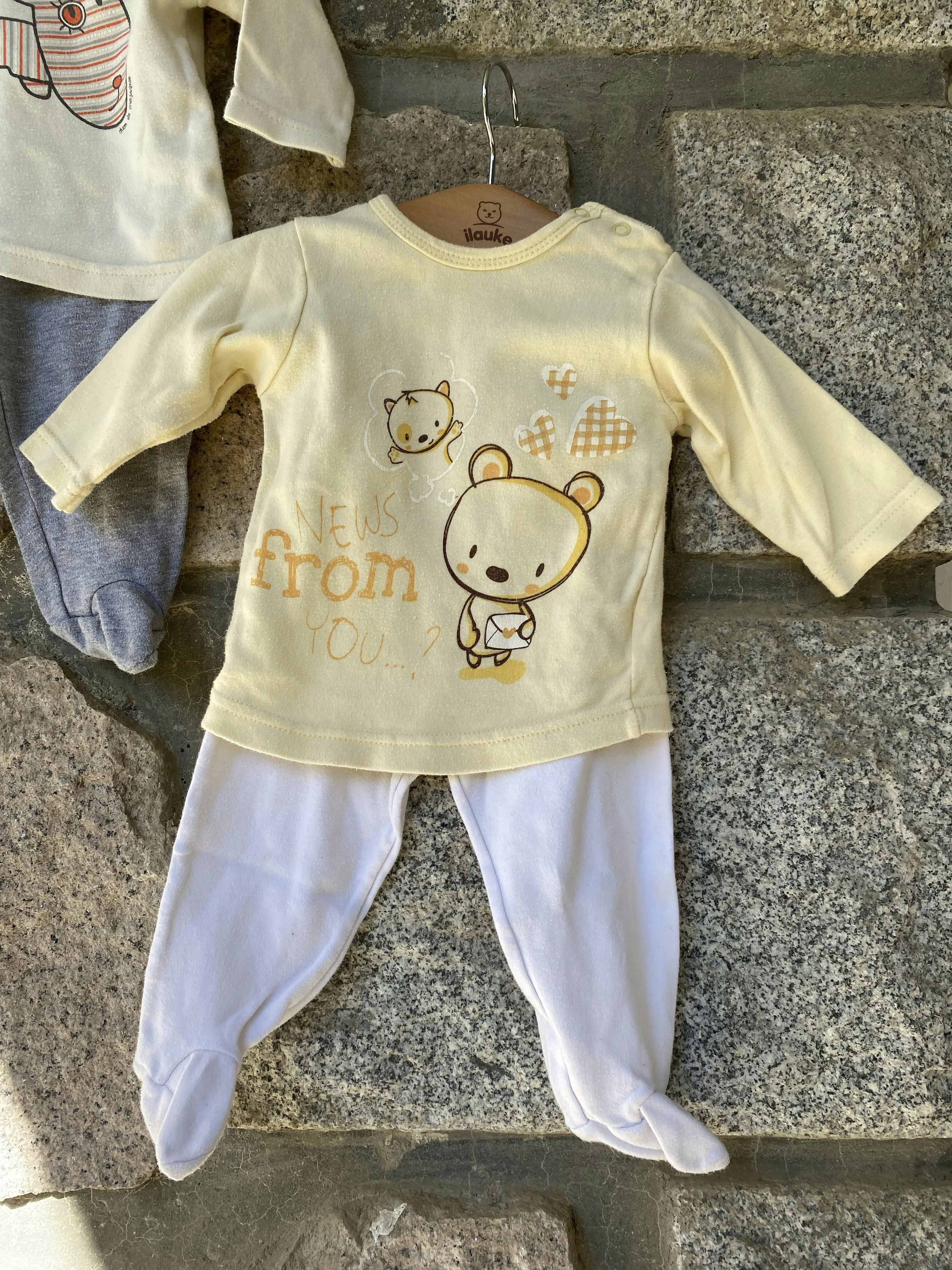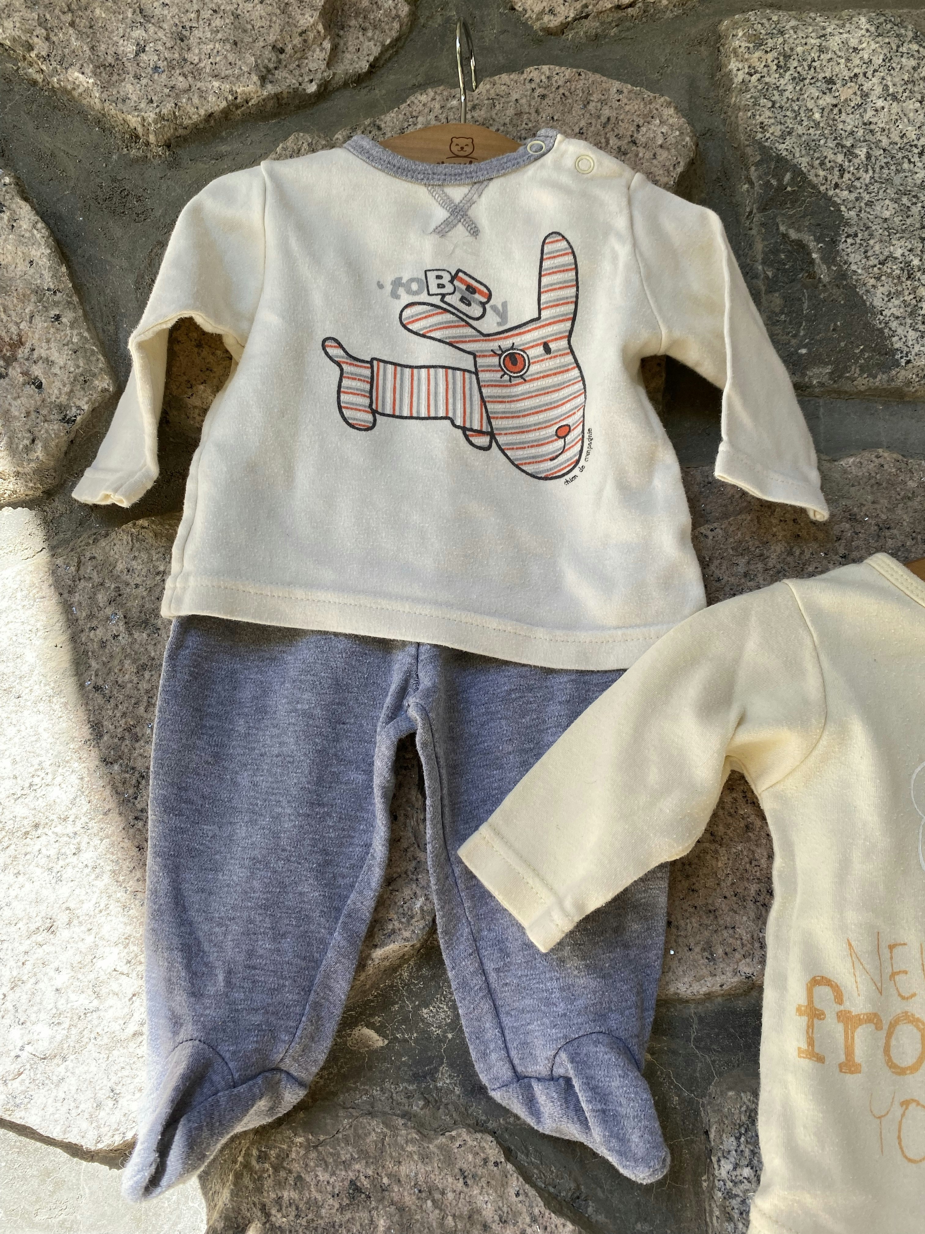 Lot de 2 grenouillères Bébé garçon Taille 6 mois 1 pantalon blanc haut jaune 1 pantalon gris haut jaune Marque Kimadi Très bon état
