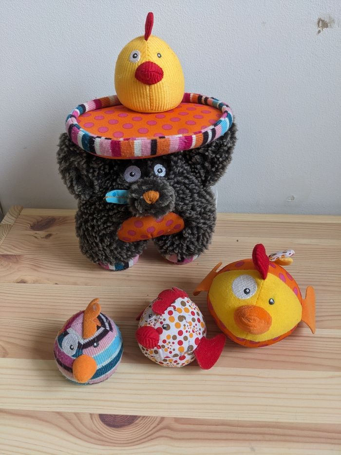 Jeux de quille poule avec trois poussins