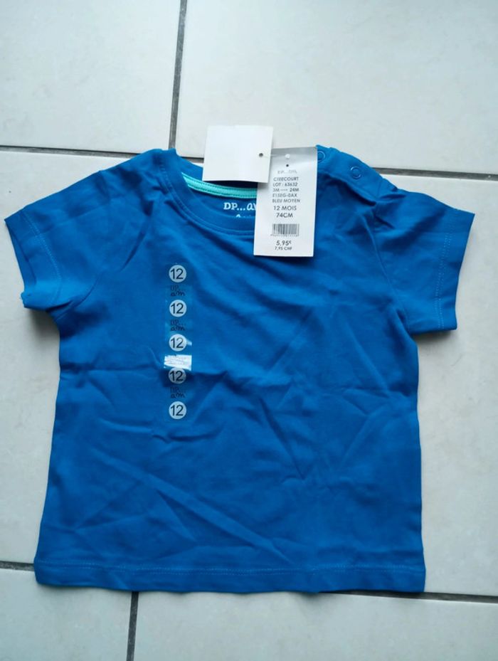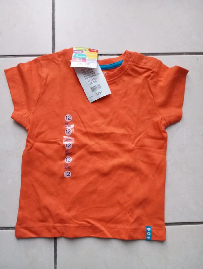 Lot de 5 tee-shirts DPAM couleurs unies sans dessin. Taille 12 mois (74 cm) Neufs avec étiquettes