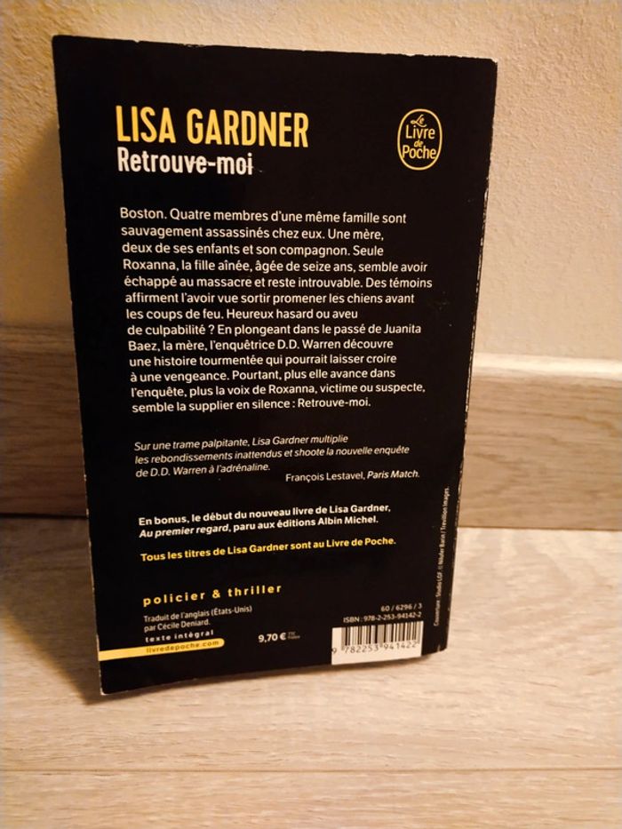 Livre retrouve-moi de Lisa Gardner. Acheté neuf et je l'ai lu entièrement une fois. #livre_isabellegrobol