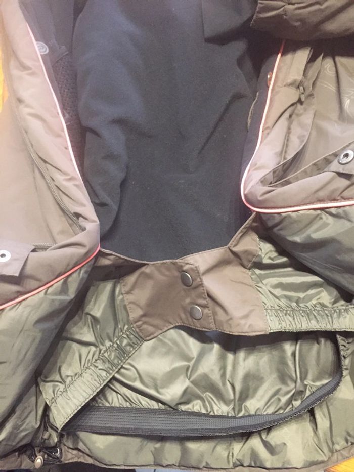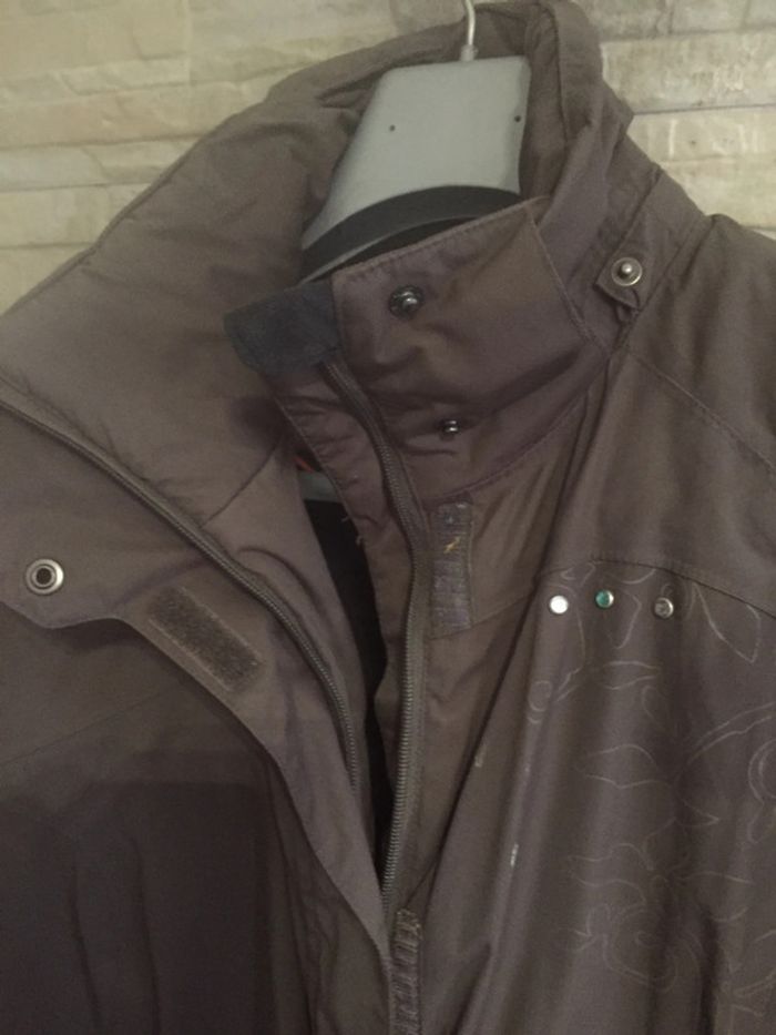 Blouson marron matelassé GoSport, Activ Protect+, taille 42, longueur 73 cm, largeur épaules 46 cm, entièrement doublé polaire, fermeture gilet intérieur 2 pressions, manches avec mitaines passe pouce, toutes les fermetures éclair OK, polyester/polyamide - comme neuf - TBE