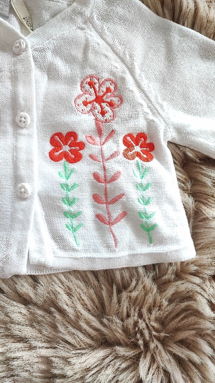 Gilet blanc a fleurs De la marque orchestra En taille 1 mois En très bon état / maison non fumeur #laetitia33700filleunmois