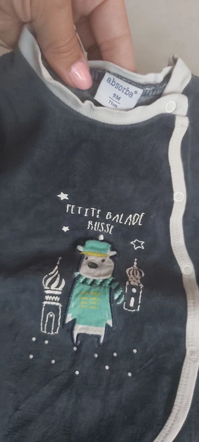 Grenouillère/pyjama velours mixte garçon/fille Absorba 9 mois (78) - photo numéro 2