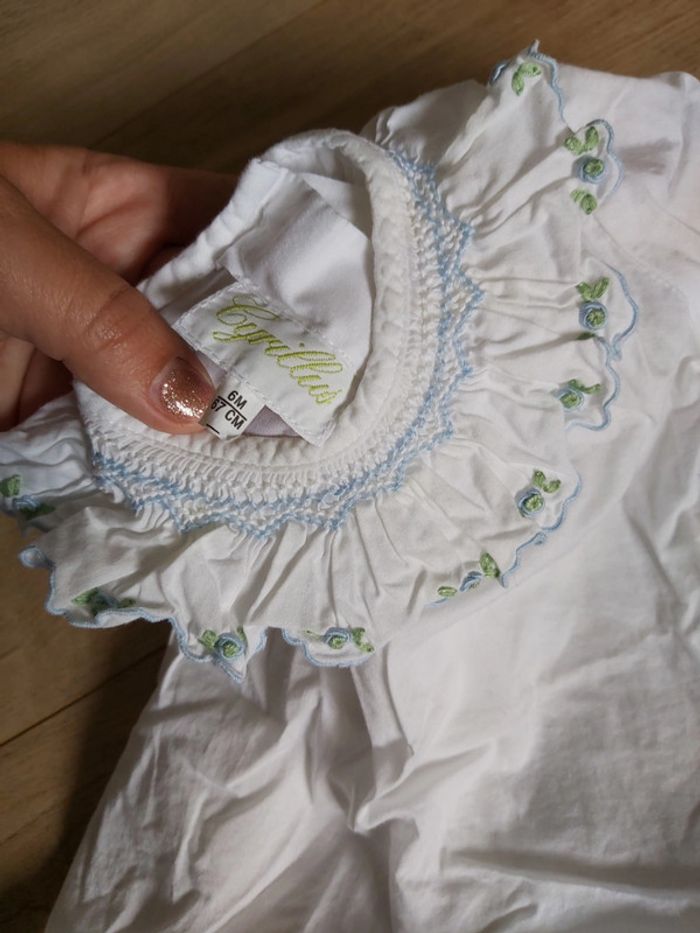 Chemisier avec col brodé fille Cyrillus 6 mois comme neuf (78) - photo numéro 3