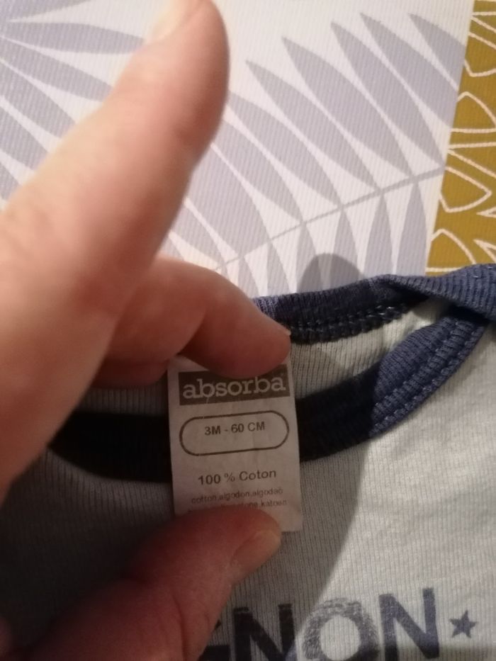 Lot de 2 body manches courtes de la marque absorba et l'autre de la marque Petit Bateau pas de tâches, ni de trous taille 3 mois
