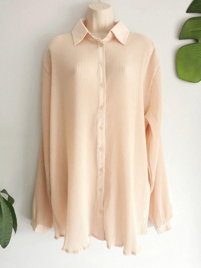 🙎‍♀️ ARTICLE NEUF AVEC ÉTIQUETTE 🙎‍♀️ Chemise plissée oversize 👩 PrettyLittleThing Taille 42 • Matière: 96% polyester - 4% coton • Tissu plissé • Coupe longue oversize • Manches longues boutonnées au poignet • Fermeture par boutons 🔘🔘🔘 à l'avant • Col chemise 👚 • Couleur: crème • 🆕 Collection actuelle • 📏 Longueur: 83 cm • 📏 Mesure épaules: 50 cm • 📏 Mesure sous aisselles: 66 cm 💰Prix boutique: 45€ Parfait état👌, avec étiquette🏷️, jamais portée #SoStyLifemmeTailleXL ⬛