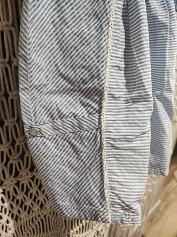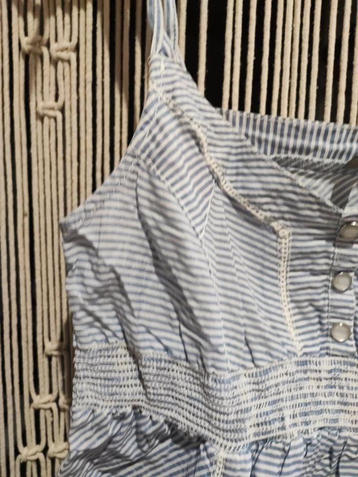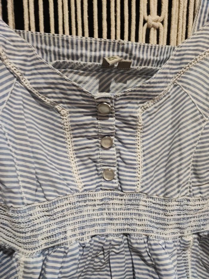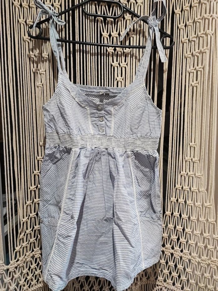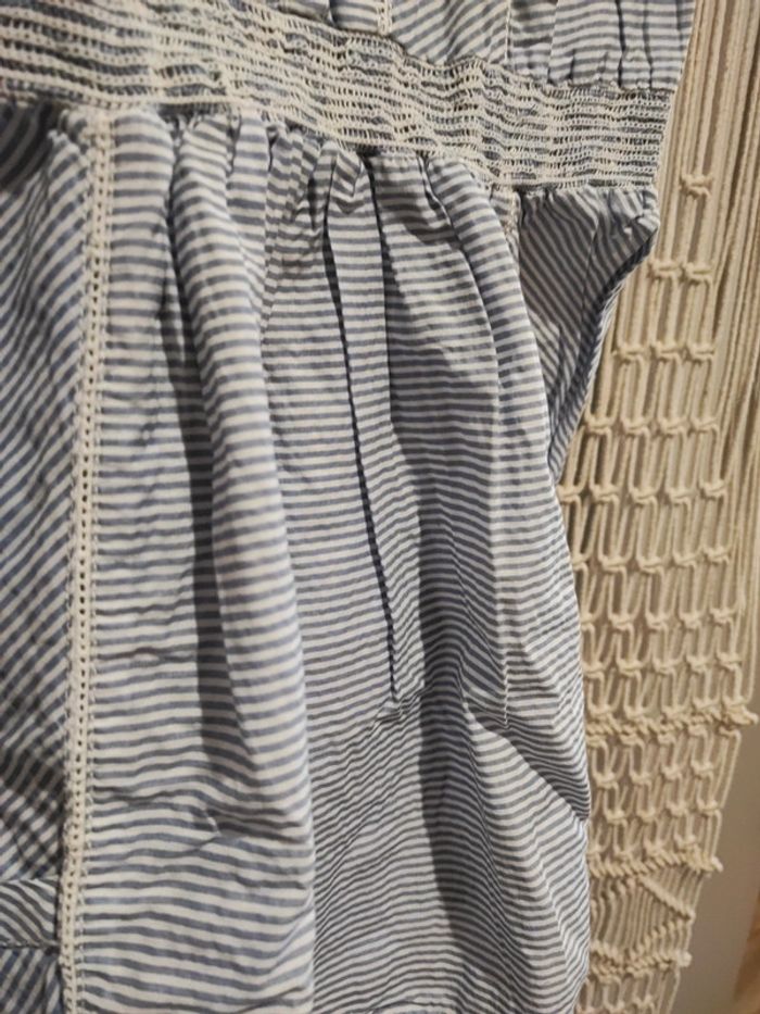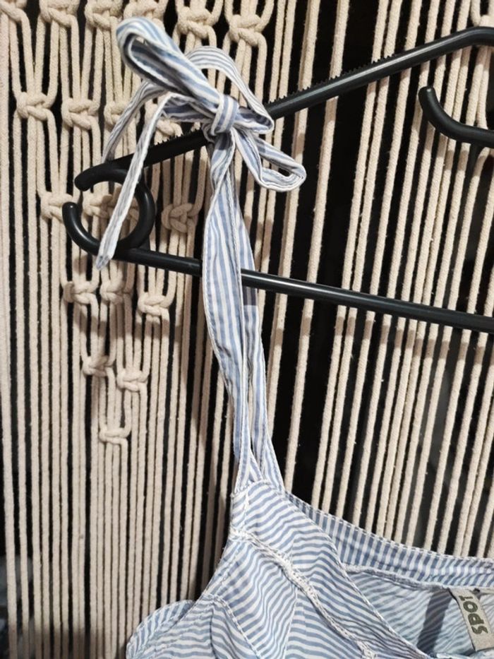 Débardeur à rayures blanches et bleu et bretelles à nouer sur les épaules Effet bouffant et deux poches sur les côtés De la marque spot en taille 36