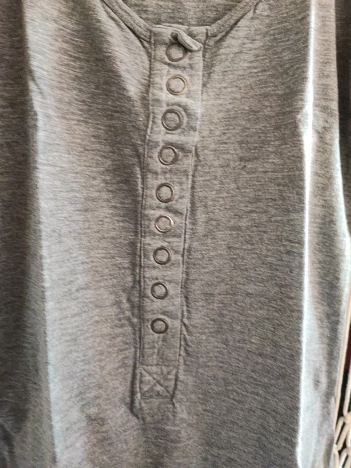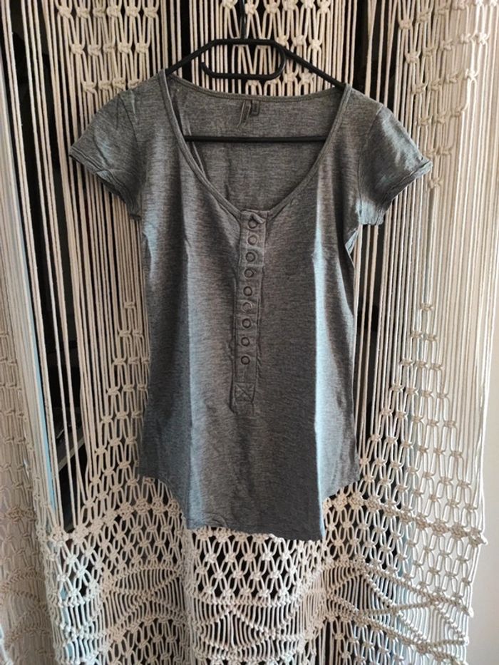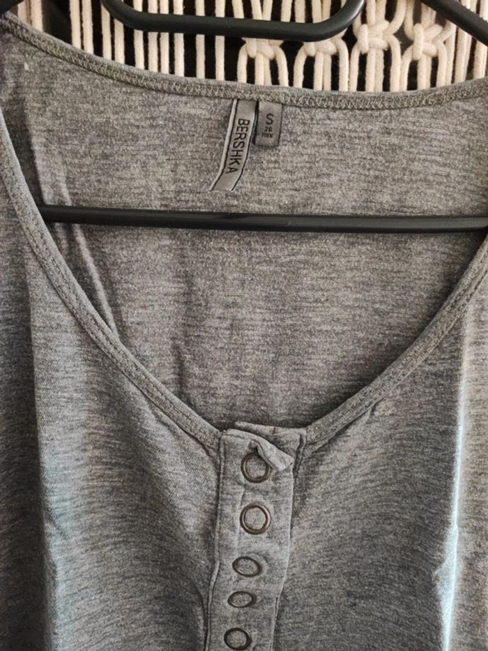 T-shirt à manches courtes très long avec bouton sur le devant et col rond Marque Bershka en taille S couleur gris Bon état