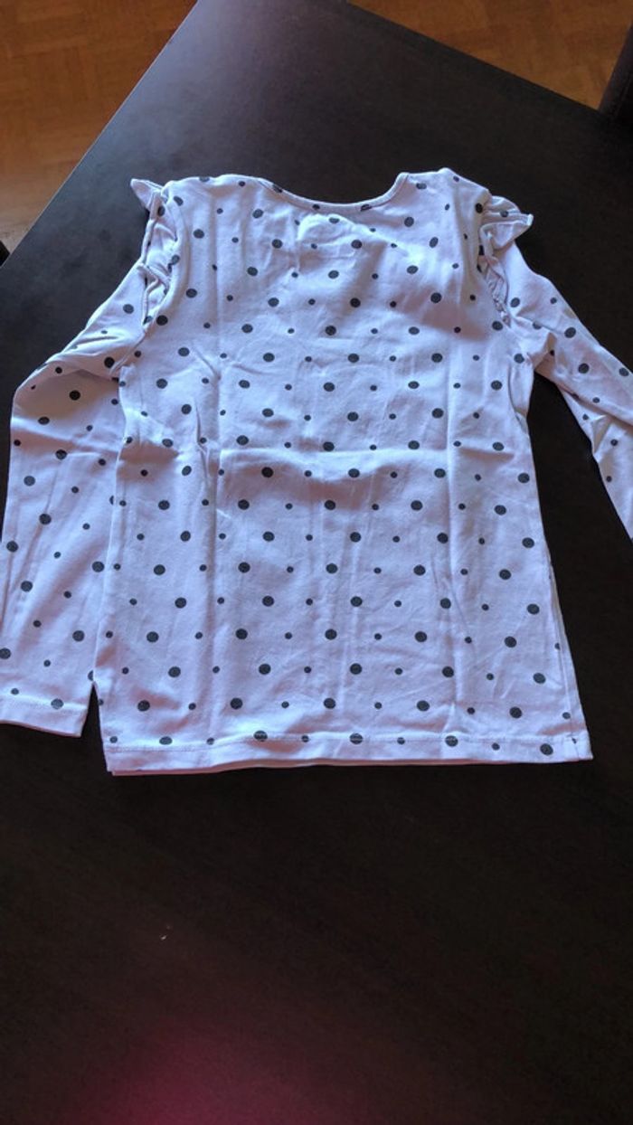 Tee shirt manches longues blanc à pois noirs Minnie de chez C&A en taille7ans #fille7ans_elo