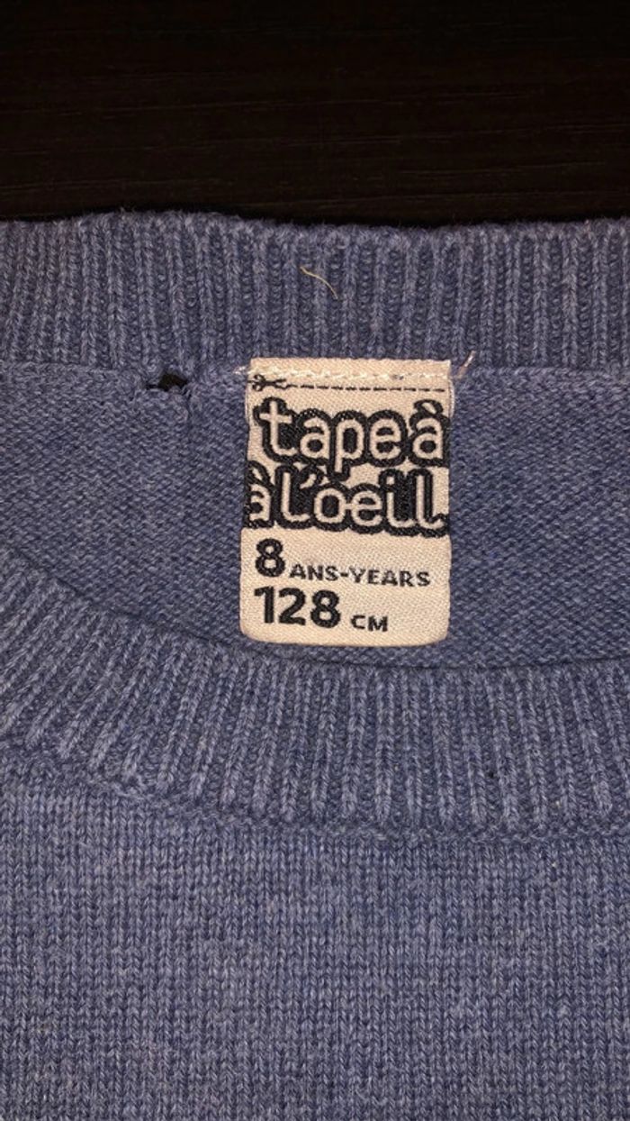 pull fin bleu de la marque TAO en taille 8 ans ⚠️ voir trou à l’encolure sur dernière photo #garcon8ans_elo