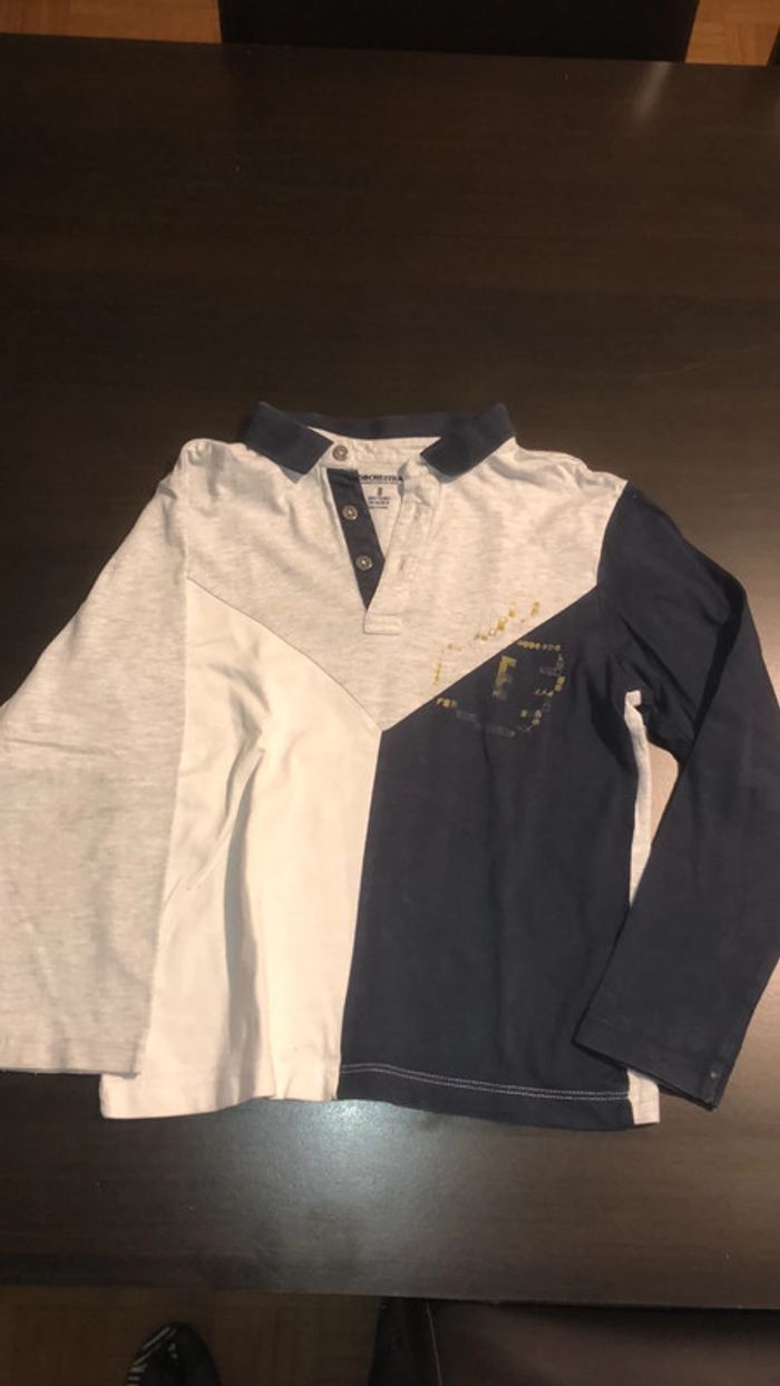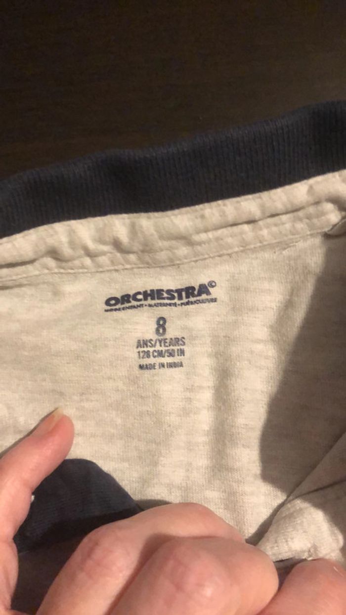 tee shirt manches longues de la marque Orchestra en taille 8 ans, 3 couleurs: blanc, gris, bleu marine. Petite tâche en bas à droite, voir dernière photo. #garcon8ans_elo