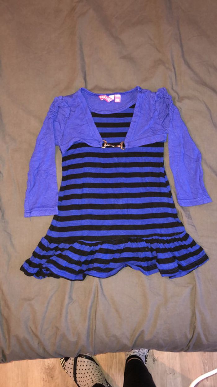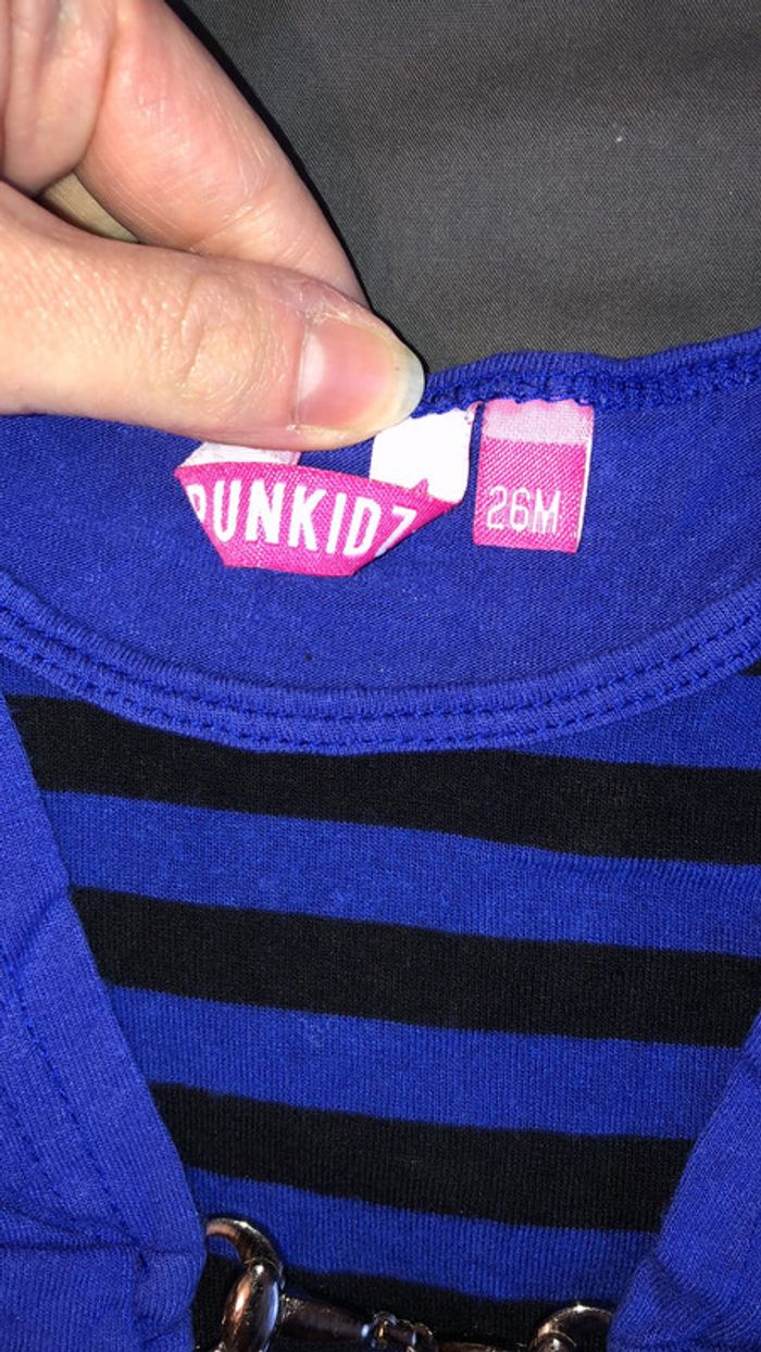Jolie robe violette rayé noir de la marque Punkidz en taille 26 mois avec fantaisie fronces au niveau des épaules #fille2ans_elo