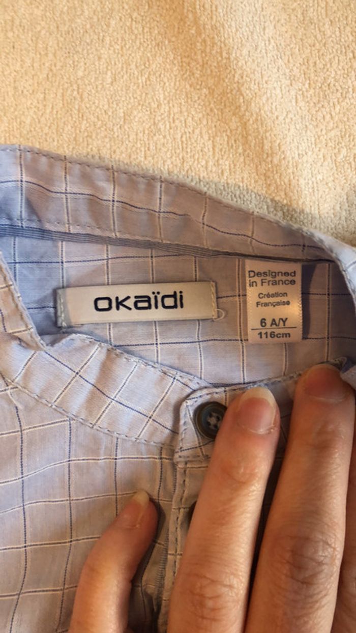 chemise garçon bleue ciel à carreaux de la marque Okaidi en taille 6 ans. Neuve, jamais portée #garcon6ans_elo
