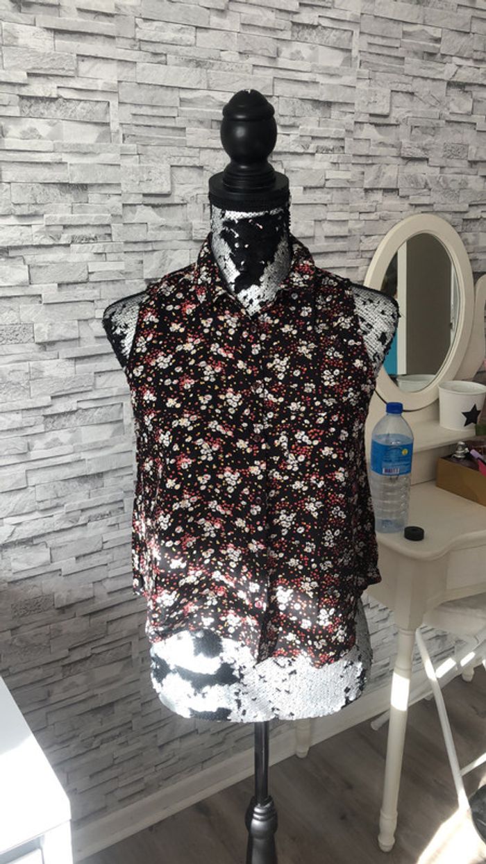 chemisier sans manches noir fleuri de la marque Jennyfer en taille S #hauts_elo