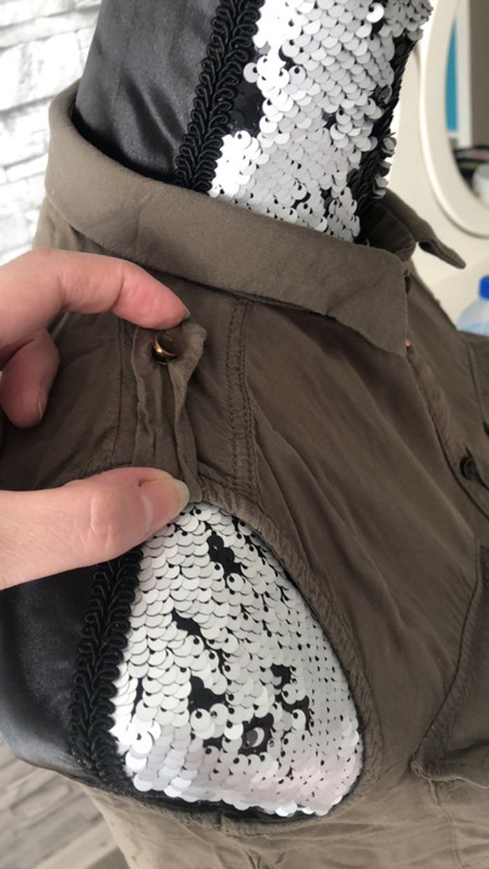 chemisier sans manches kaki, les étiquettes ont été coupées. Manque 1 bouton voir photo #fille12ans_elo