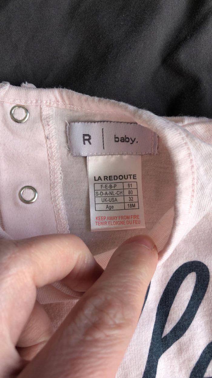 teeshirt manches longues rose pâle « Belle » de chez La Redoute en taille 18 mois #bebefille18mois_elo