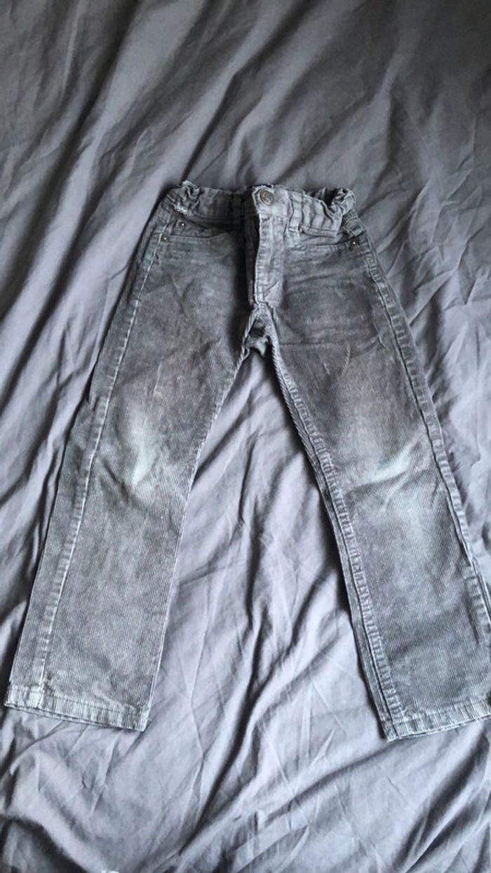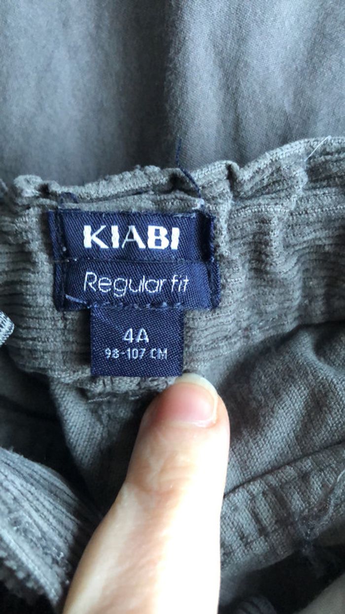 pantalon en velours gris foncé de la marque Kiabi en taille 4 ans usé genou gauche. #garcon4ans_elo