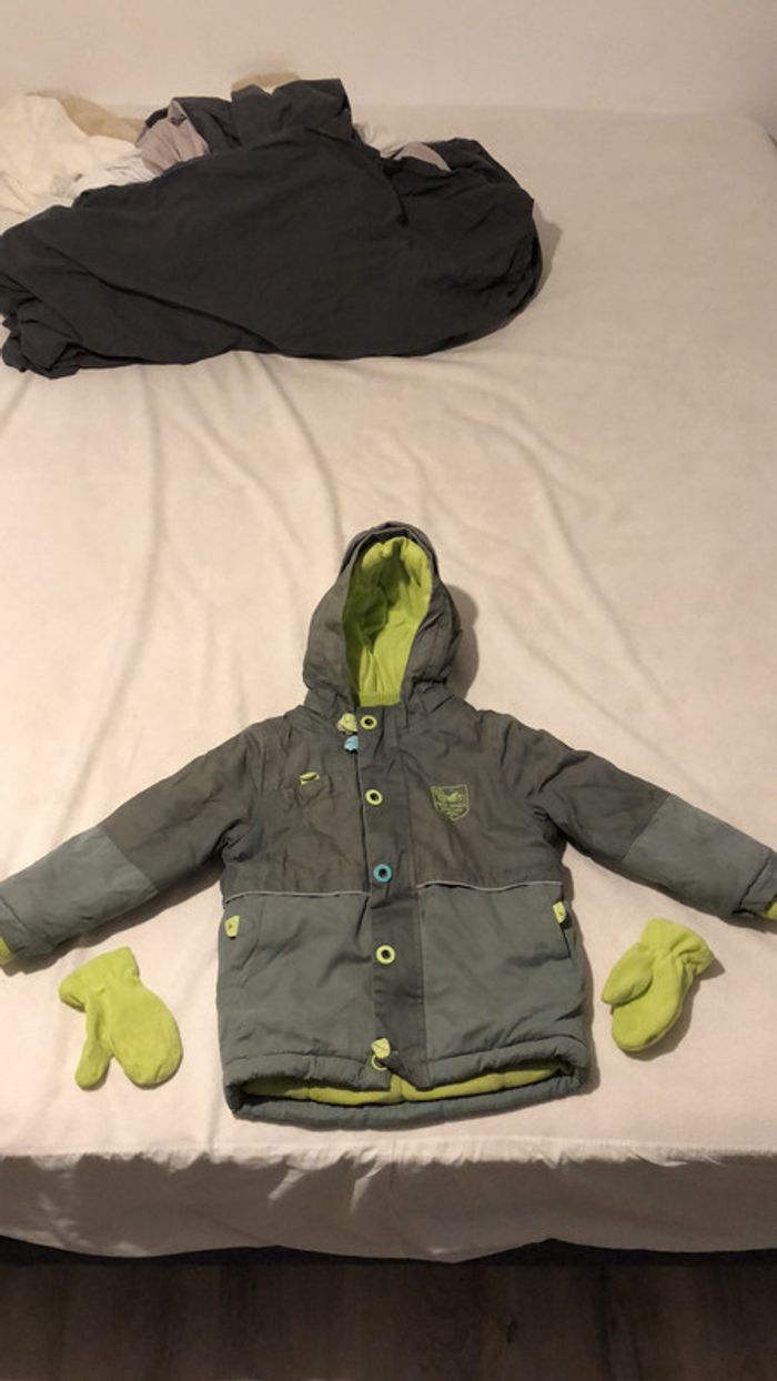 manteau vertbaudet de couleur verte en taille 4 ans avec ses gants #garcon4ans_elo #manteaux_elo