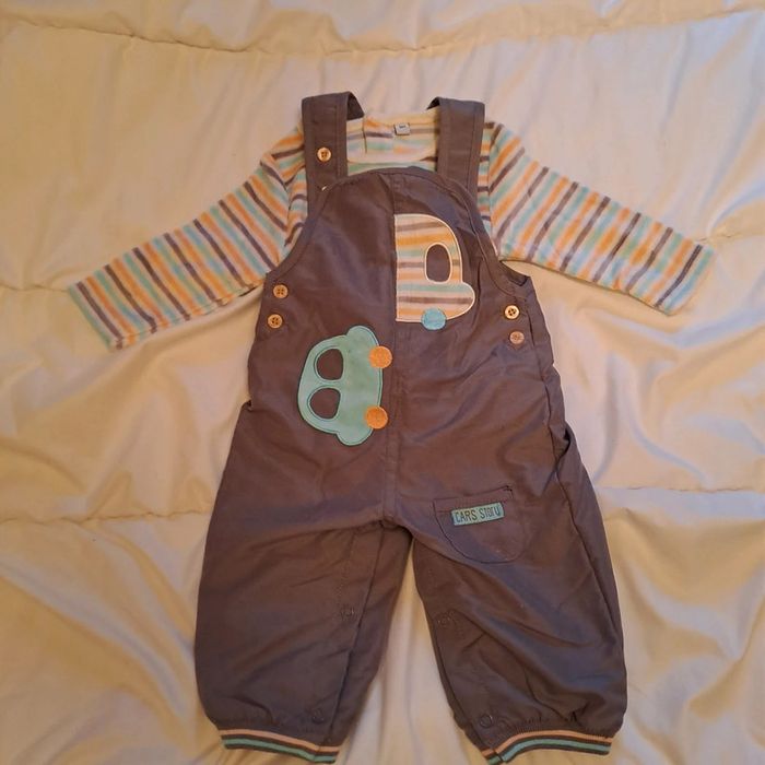 Ensemble garçon taille 6 mois en bon état composé d'un T shirt "épais" et d'une salopette.