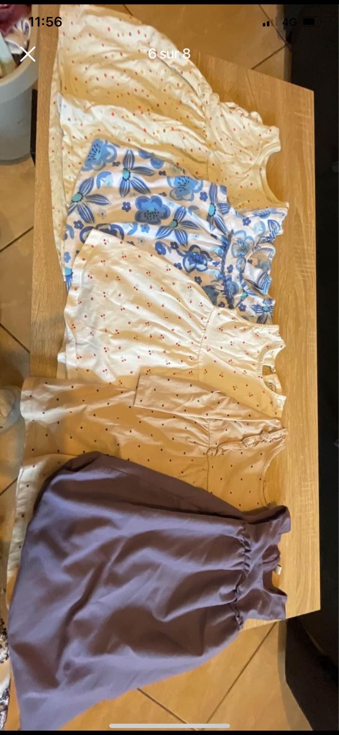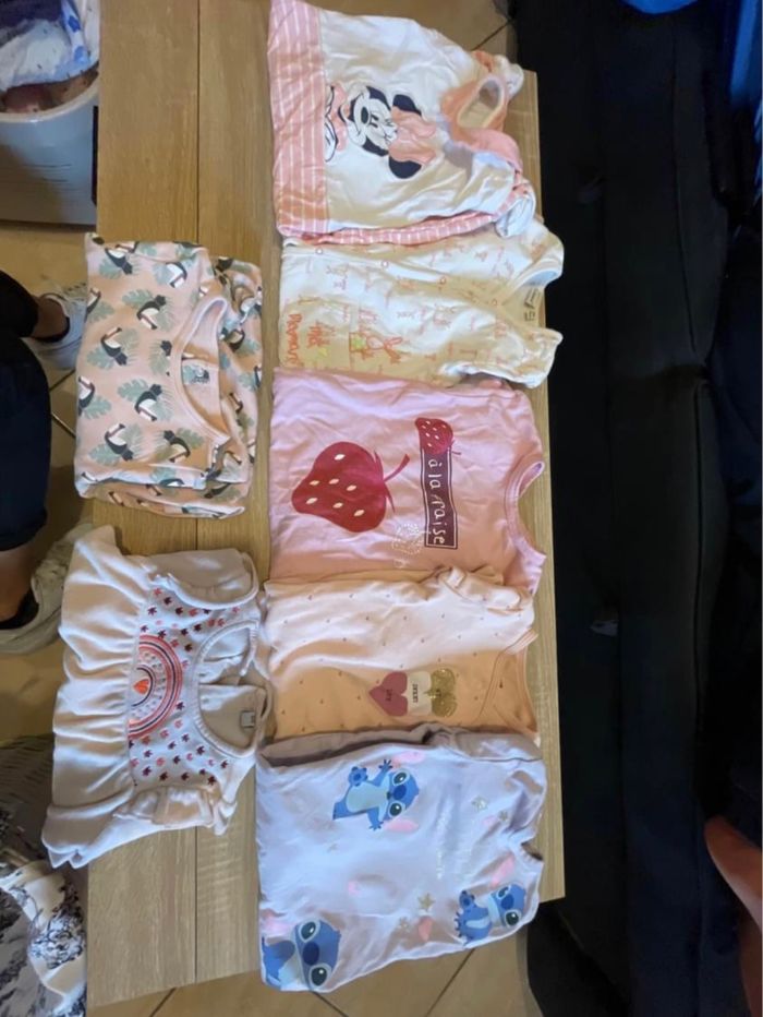 Bonjour ! 🎊 Lot de 69 vêtements taille 12 MOIS, comprenant - 6 leggings - 3 paires de collants - 8 shorts - 2 pantalons décontractés - 3 jeans - 3 t-shirts manches longues - 8 t-shirts manches courtes - 5 combinaisons - 2 salopettes - 10 robes (dont 1 manches longues) - 6 pyjamas - 1 haut de pyjama (le violet arc-en-ciel) - 5 bodys manches longues - 4 bodys manches courtes - 3 vestes Voir moins