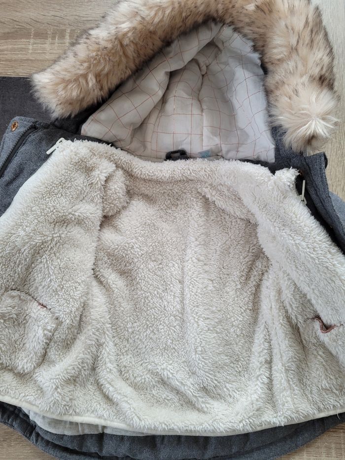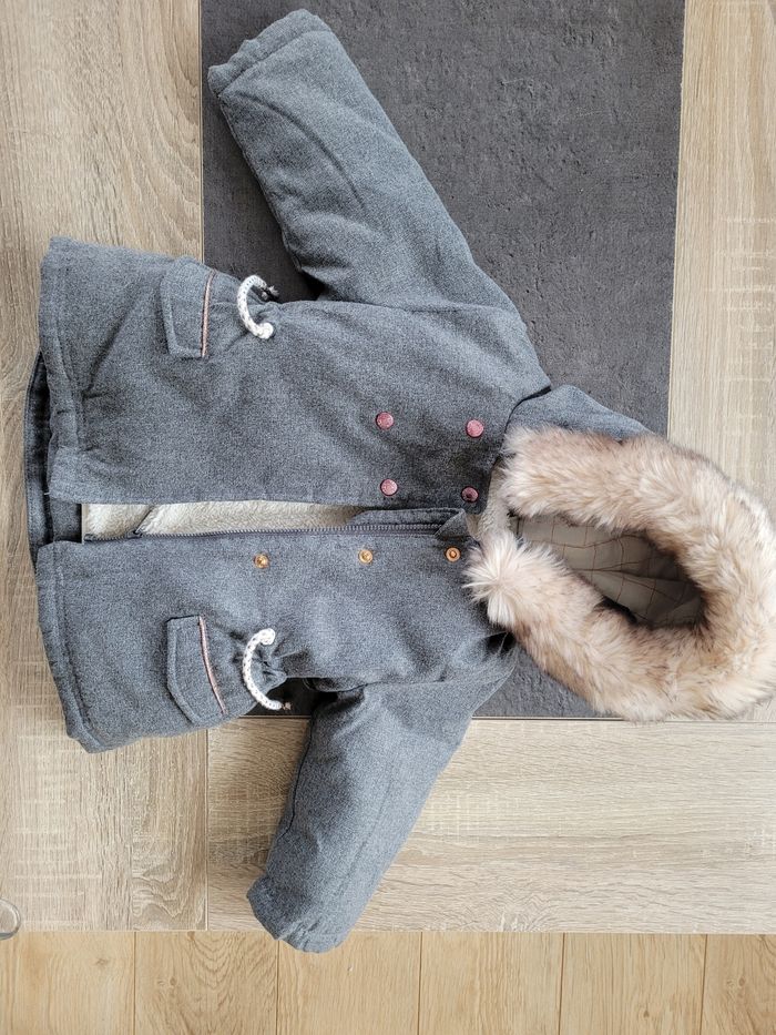 Manteau avec doublure amovible. Ma doublure est un gilet qui peut se porter seul. Taille 12 mois.