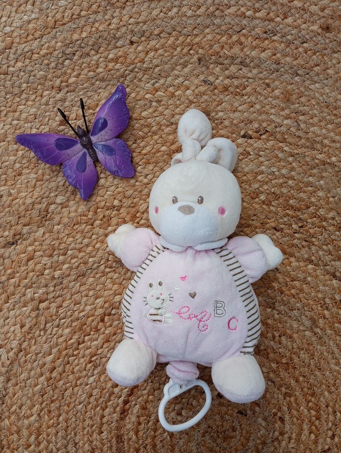 Nicotoy Simba Kiabi Lapin musical Beige rose Broderies ABC #douceur_nicotoysimbakiabi C28