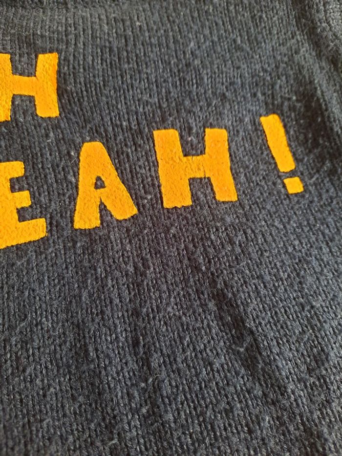 ‼️ Oh yeah ! Pull laine bleu marine avec motif jaune/orange, marque Kiabi, en bon état général malgré qq bouloches (photo 3), ouverture par boutons épaule Retrouvez tous mes articles ⬇️ #catandco_24mois