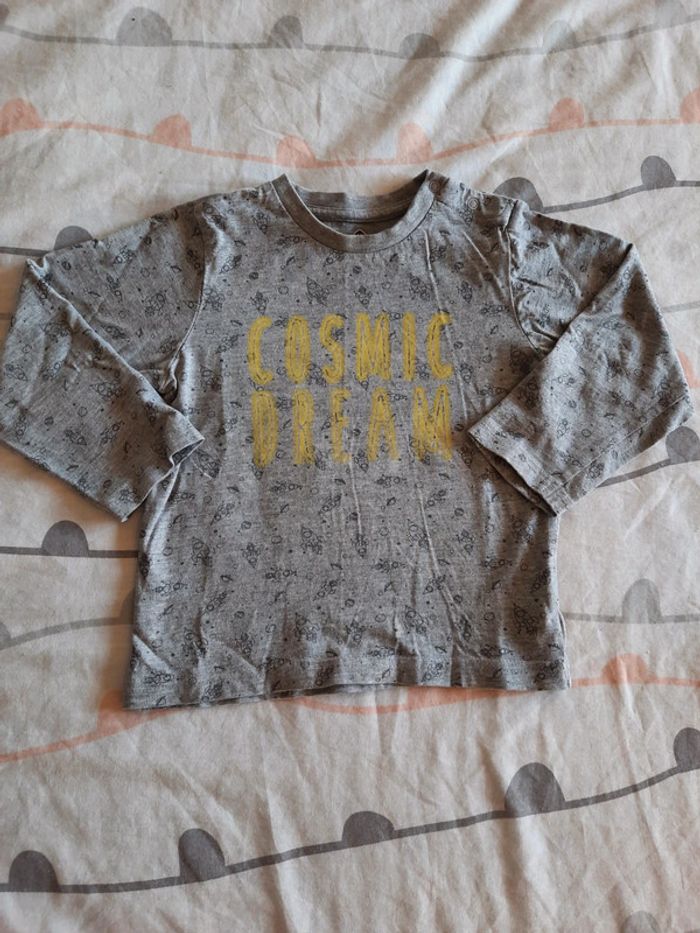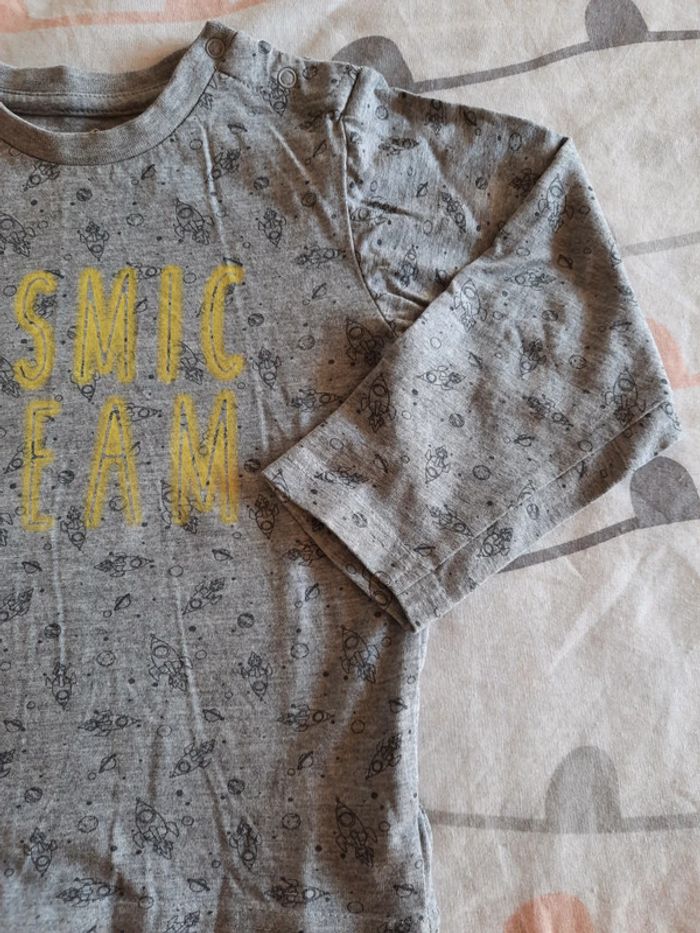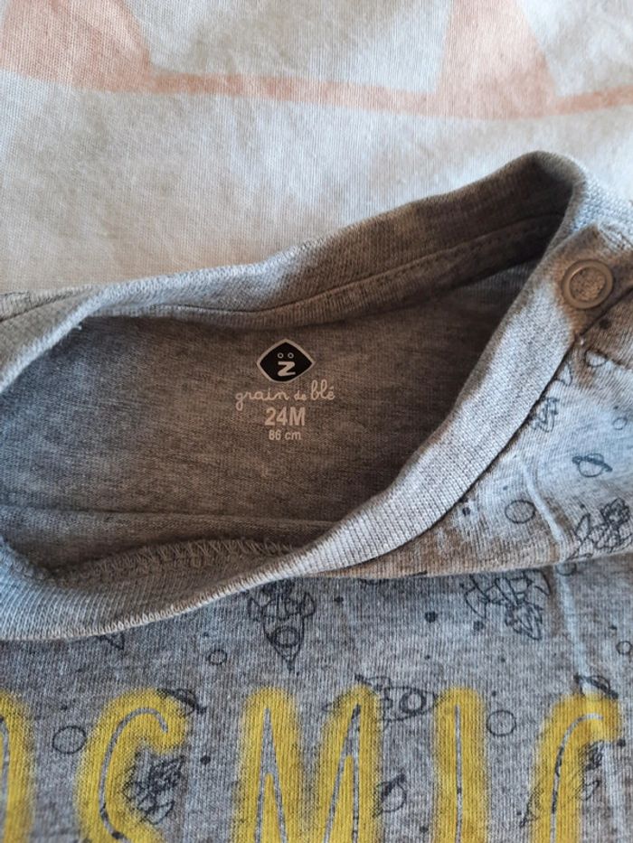 ‼️ Idéal entre 2 saisons Tee-shirt manches longues gris avec motifs 🚀 Ouverture par pressions à l'épaule Très bon état Retrouvez tous mes articles ⬇️ #catandco_24mois