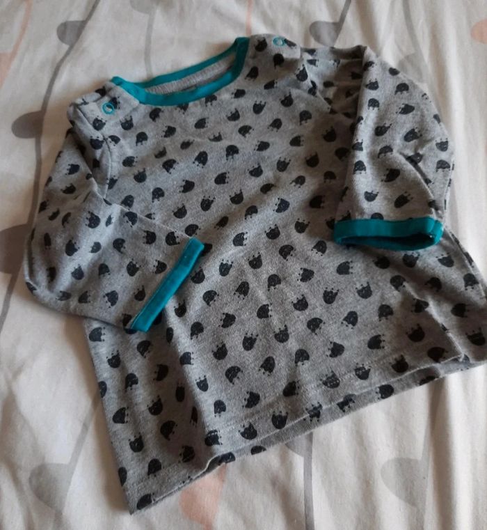 ‼️ Double ouvertures Petit pull léger gris avec double ouvertures aux épaules (super pratique pour les enfants avec une grosse tête 🤣). Le bleu sur le col et les manches est plutôt turquoise. Retrouvez tous mes articles ⬇️ #catandco_9mois