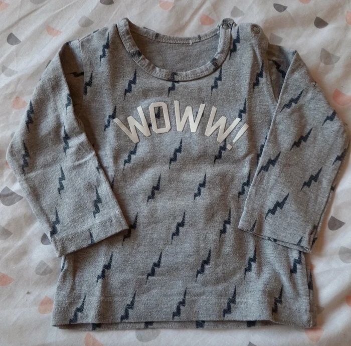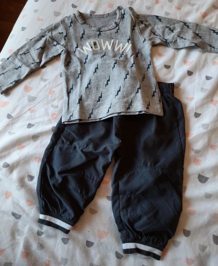 Lot comprenant : - un tee-shirt manches longues assez épais gris avec motif en relief (photo 2) - très bon état mais étiquettes coupées ⚡ - un jogging gris foncé avec bandes blanches aux chevilles - très bon état Possibilité de vente à l'unité 😊 Retrouvez tous mes articles ici 👇 #catandco_6mois
