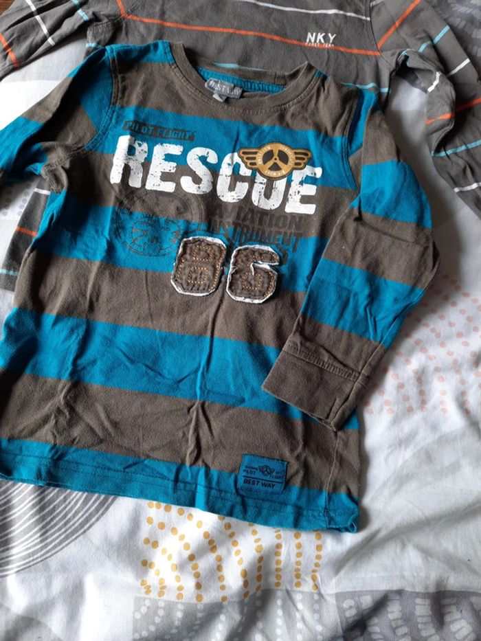 Sweat kaki et turquoise "Rescue", marque Best Way Sweat gris rayé orange et bleu, marque NKY Bon état général Taille : 5 ans Retrouvez tous mes articles ici 👇 #catandco_5ans