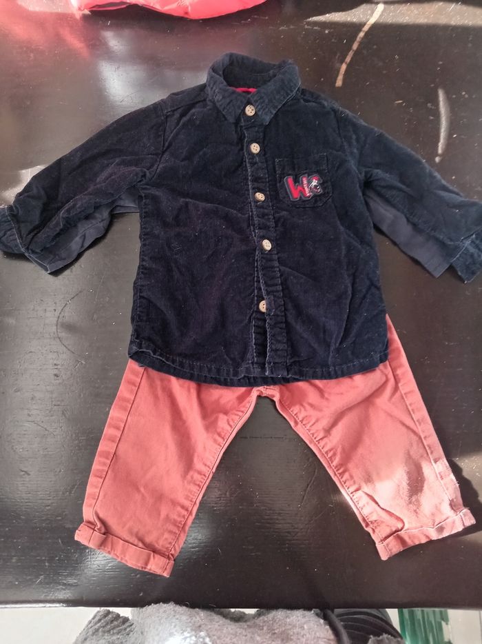 Ensemble chemise pantalon t-shirt et chemise en velour orchestra taille 6 mois un pantalon marron kiabi taille 6 mois