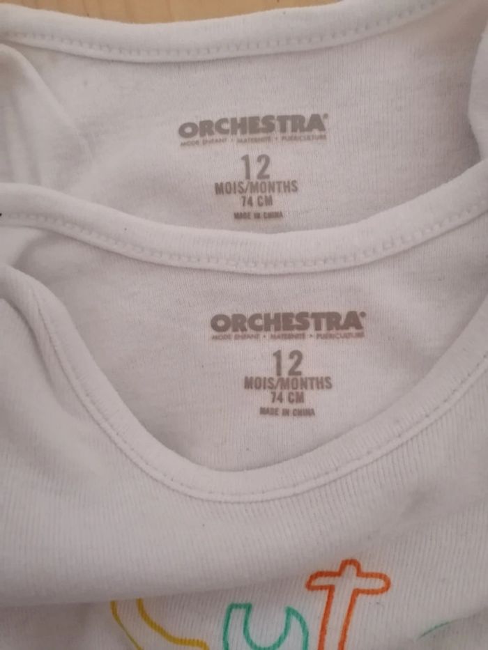 Lot de 2 bodies mixtes état neuf. Orchestra 12 mois #hanna9889fille12mois #hanna9889garçon12mois #hanna9889mixte12mois