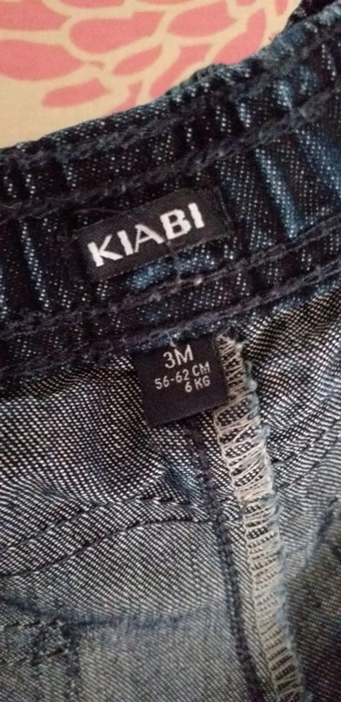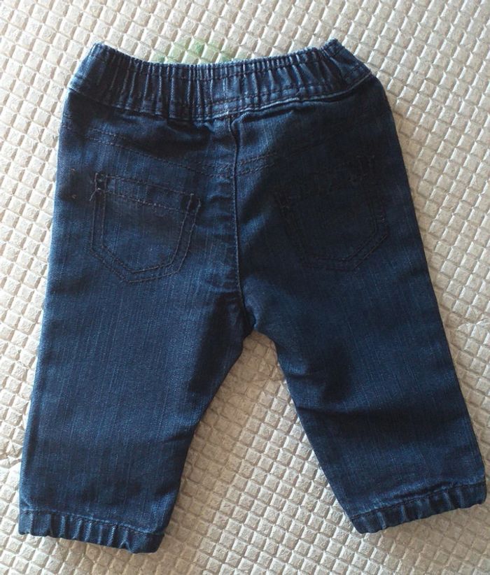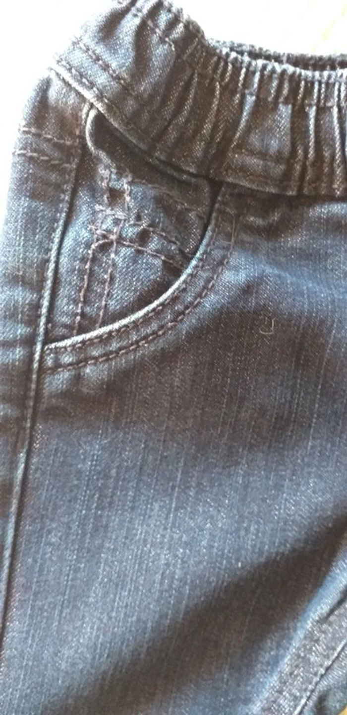 Porté quelques fois. Jean avec taille élastique. Fausse poches devant. Taille 3 mois.