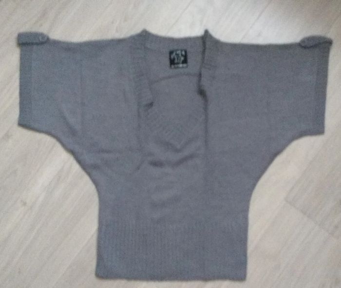 Porté plusieurs fois. Pull manche courte large en haut et resserré au niveau de la taille. Col V. Taille 1.