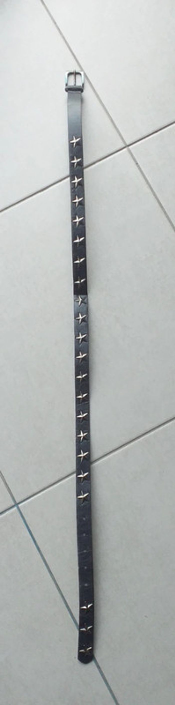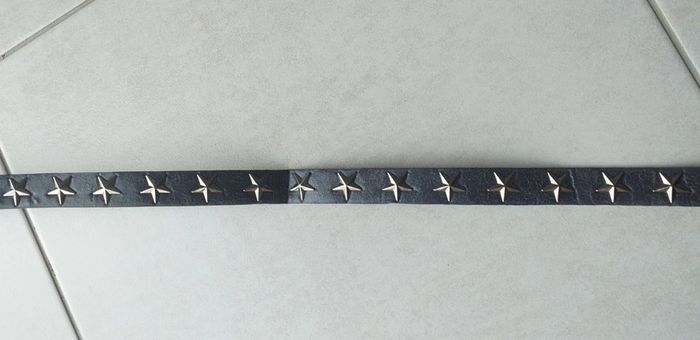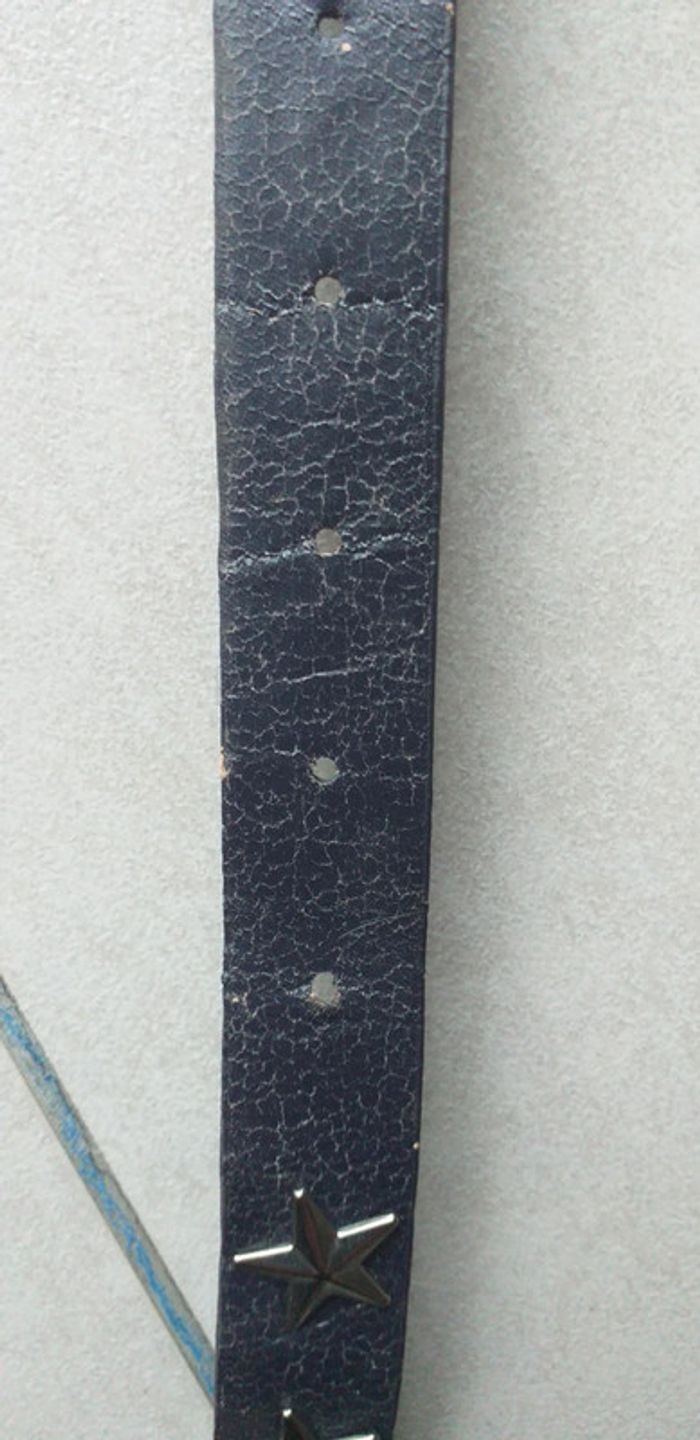 Porté plusieurs fois. Ceinture avec des étoiles. Un peu abîmé sur le côté vers les trous. Longueur 101,5cm et 2,2cm de largeur. Pour voir mes autres annonces de ceinture cliquez sur le lien ci-dessous. #stephanieviaudceinture