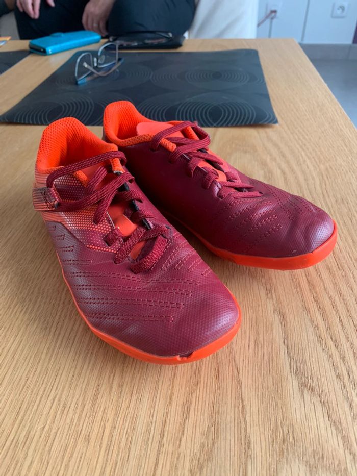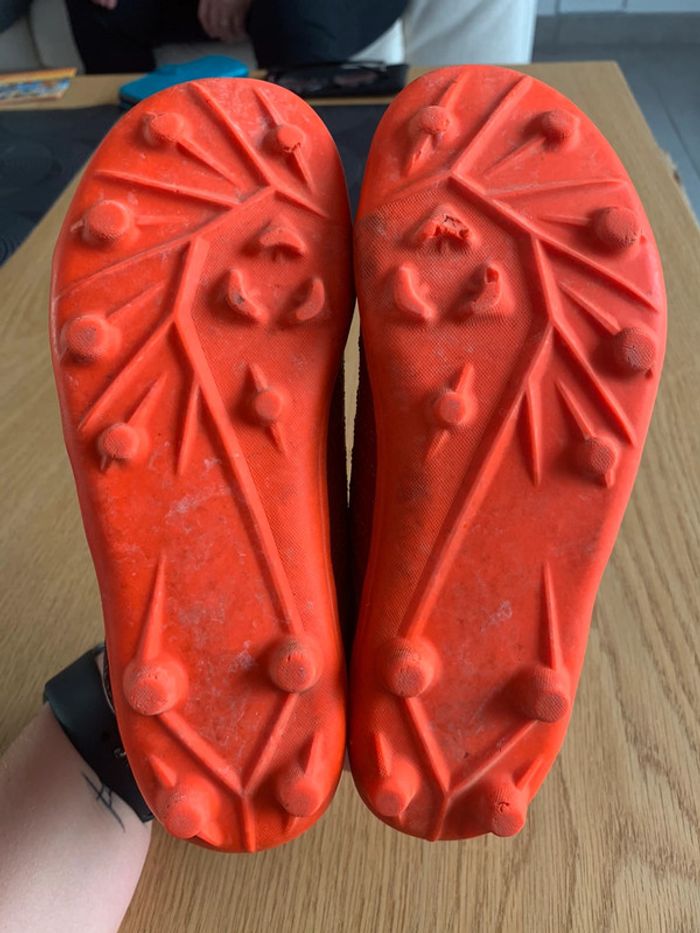 Crampons avec scratch rouge et orange, ils ont servis 1 saison et sont donc légèrement abîmés en dessous. Ils peuvent encore servir car l’usure est raisonnable