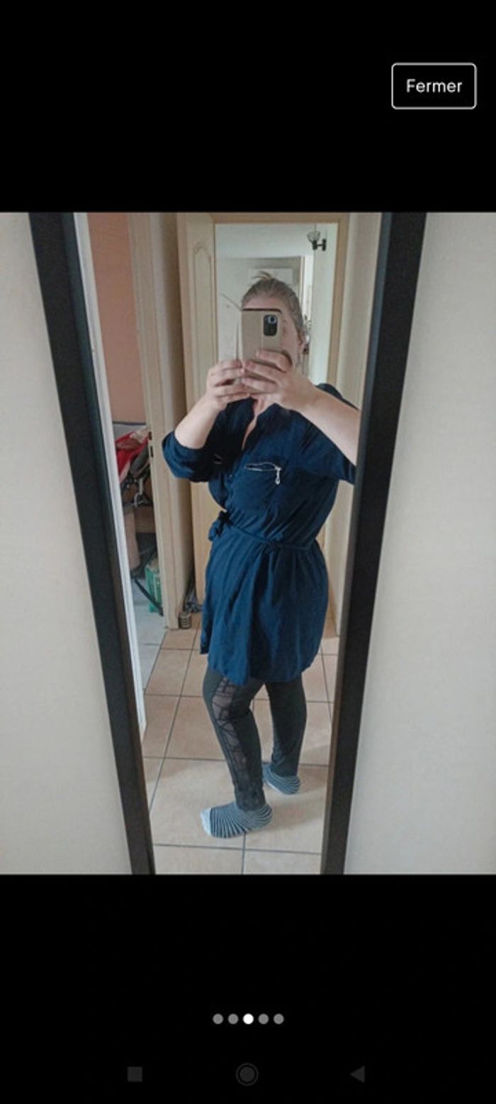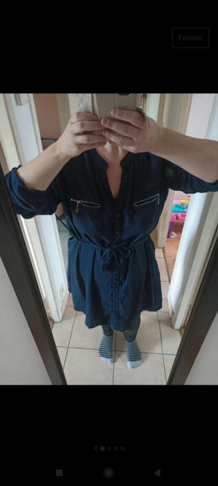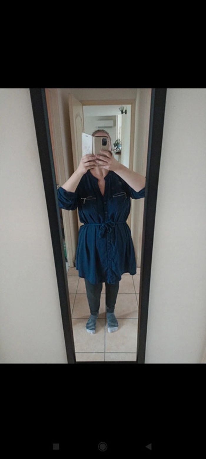 Robe/tunique. Matière légère. Avec ceinture. Manches longues qui peuvent s'attacher avec un bouton. Taille 3 (correspond à un 2XL).