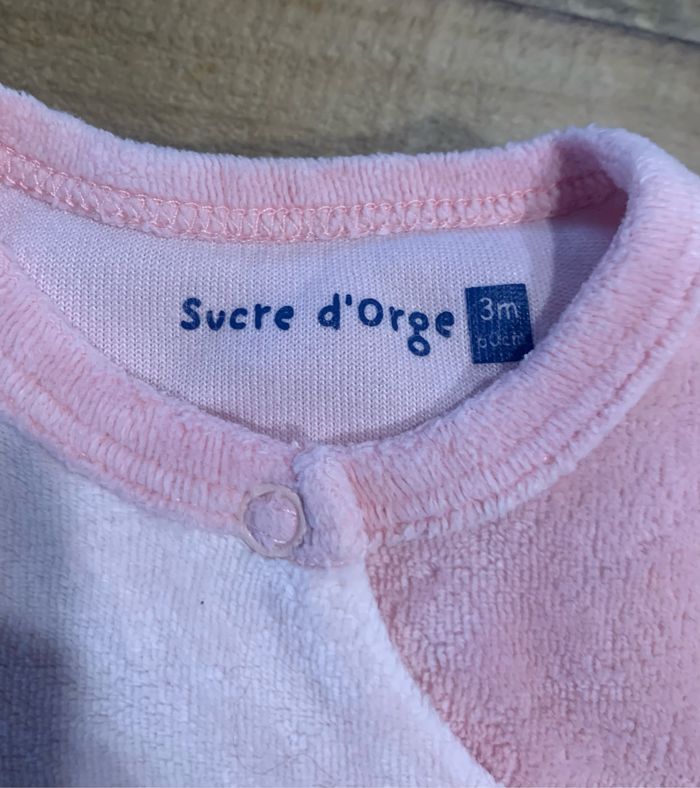 Lot de deux pyjamas bébé, taille 1 mois Pyjama rose : marque sucre d’orge Pyjama blanc : marque En bon état