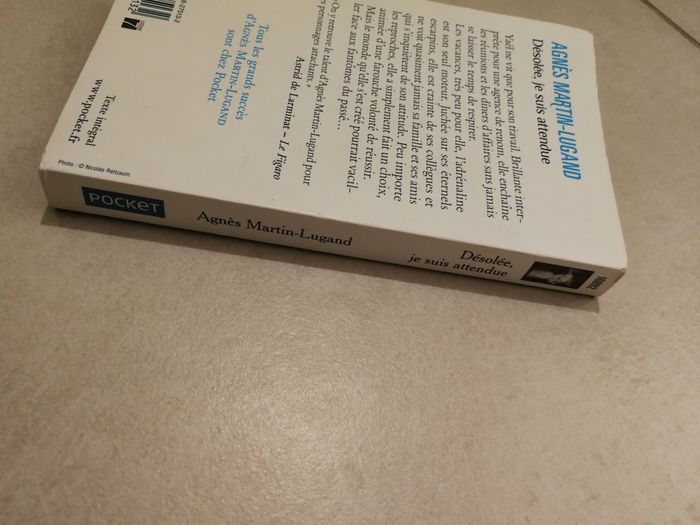 Livre de poche, désolée je suis attendue, de Agnès martin Lugand. POCKET. Roman Résumé : Yaël ne vit que pour son travail. Brillante interprète pour une agence de renom, elle enchaîne les réunions et les dîners d'affaires sans jamais se laisser le temps de respirer. Les vacances, très peu pour elle, l'adrénaline est son moteur. Juchée sur ses éternels escarpins, elle est crainte de ses collègues, et ne voit quasiment jamais sa famille et ses amis qui s'inquiètent de son attitude. Peu lui importe les reproches qu'on lui adresse, elle a simplement l'impression d'avoir fait un autre choix, animée d'une volonté farouche de réussir. Bon etat, couverture abîmée (se relève) , cf photos #livremowglie12