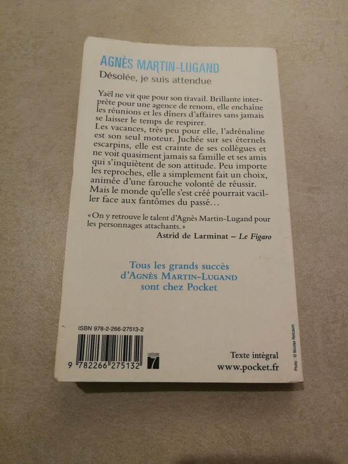 Livre de poche, désolée je suis attendue, de Agnès martin Lugand
