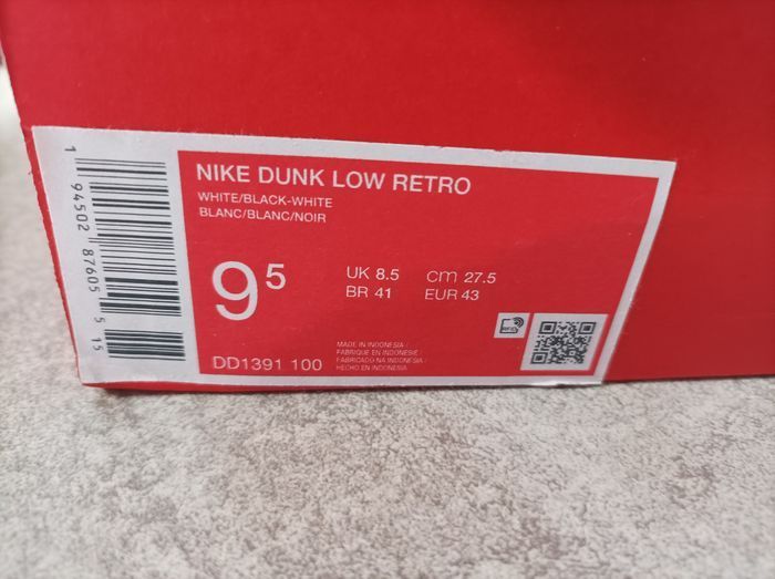 Nike Dunk Low Retro Pointure 43 Noir et blanc Excellent état comme neuve mis 3 ou 4 fois Avec boîte d'origine J'ai la facture (photos de mon achat effectué en ligne sur le site Nike)