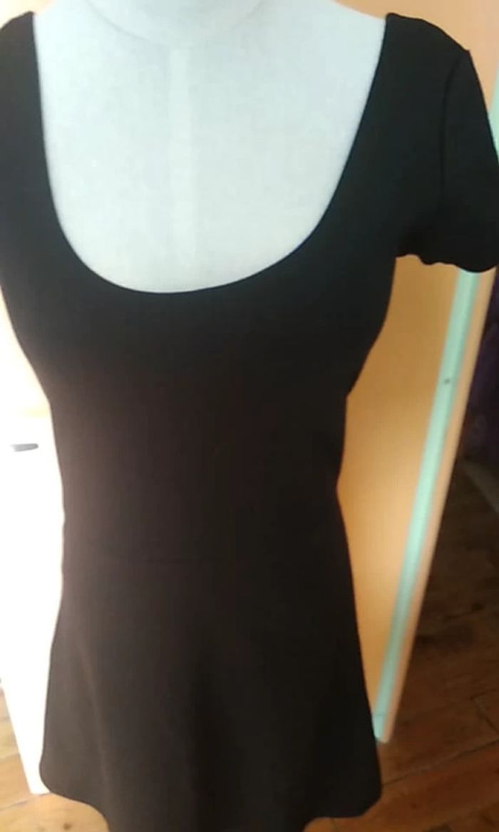 Robe noire En parfait état Manches courtes Col rond décolleté Forme légèrement évasée Non doublée mais non transparente 84 % polyester, 13 % viscose et 3 % élasthanne Taille S correspond à une taille 36 #robefemmeeilsel0 #hautfemmeT36eilsel0