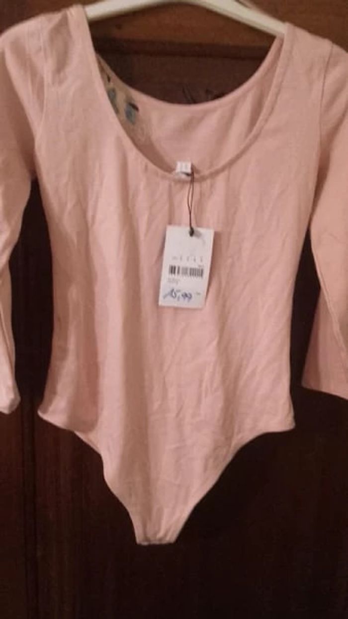 Body à manches 3/4 neuf Body à manches NEUF 96 % coton et 4 % élasthanne Col rond Motif devant en haut à gauche Se ferme à l'entrejambe par deux pressions coloris rose pâle Taille S correspond à une taille 36 #hautfemmeT36eilsel0 #articlesneufseilsel0