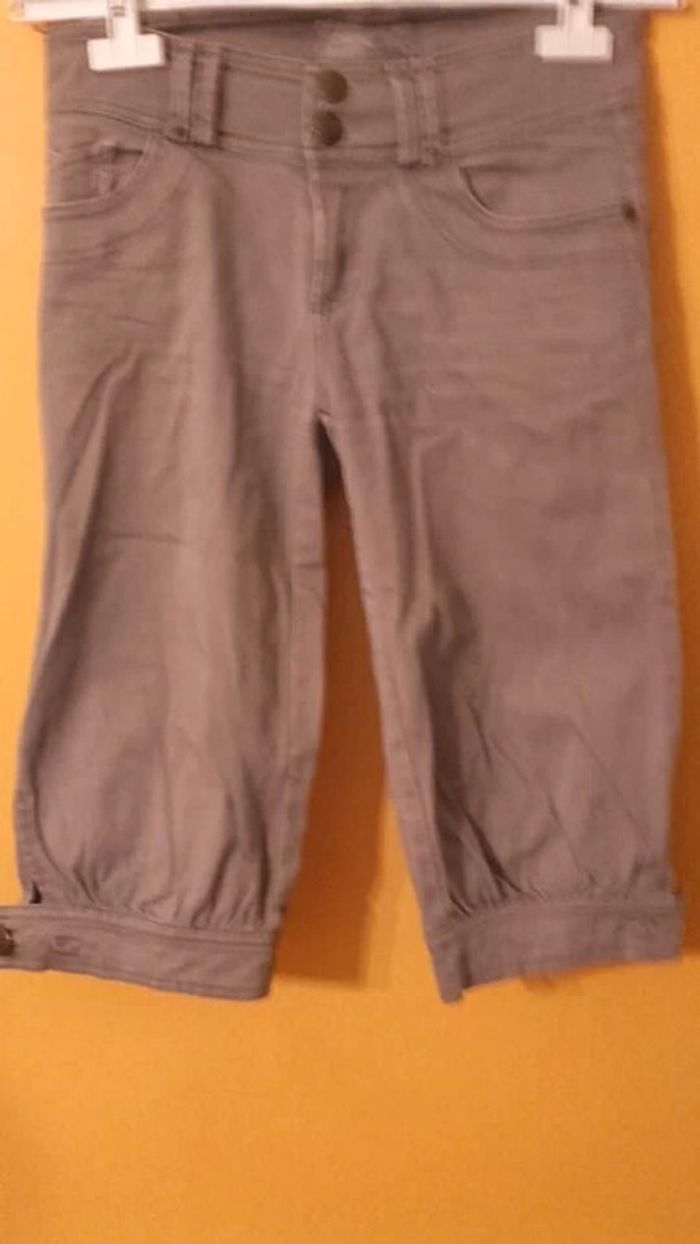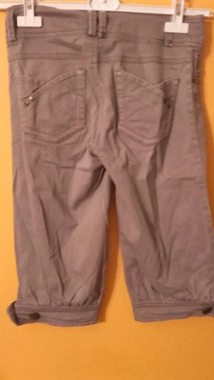 Pantacourt Style vintage 2 boutons à la taille 2 boutons sur chaque bas de jambe 2 poches à l'avant et 2 poches à l'arrière Coloris : taupe/marron clair 97 % coton et 3 % élasthanne #vêtementsfemmeXSeilsel0 #pantalonfemmeT34eilsel0