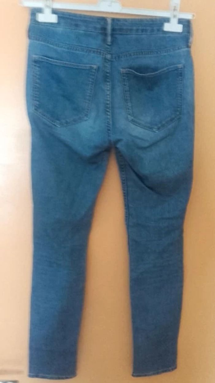 Pantalon en jeans Coupe skinny Coloris bleu 76 % coton, 23 % polyester et 1 % élasthanne 2 fausses poches à l'avant 2 poches à l'arrière Mesure à la taille : 36 cm Correspond donc à une taille 36 (indiqué 26 sur l'étiquette qui est une taille US) #pantalonfemmeT36eilsel0